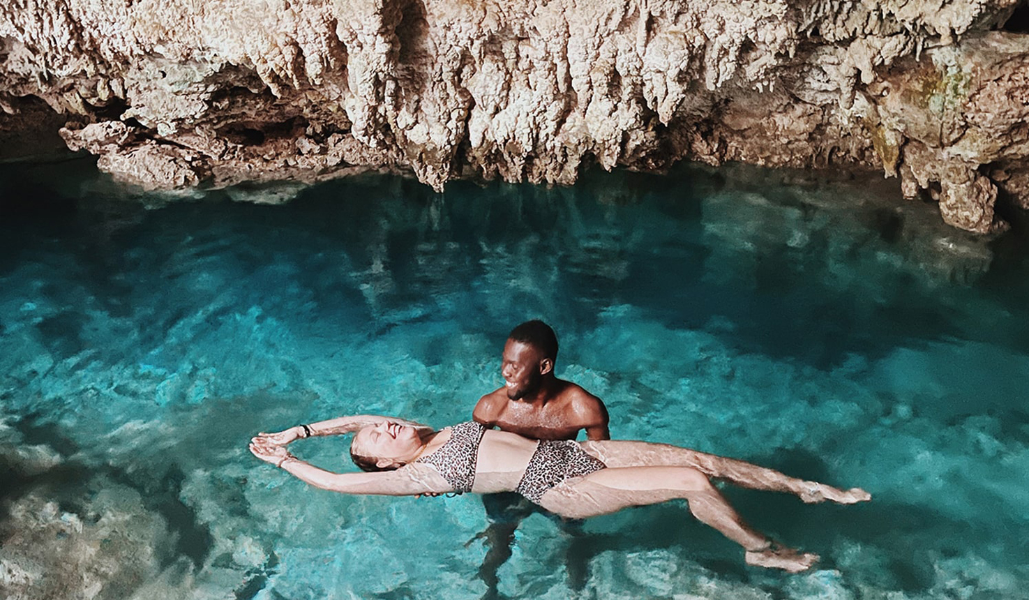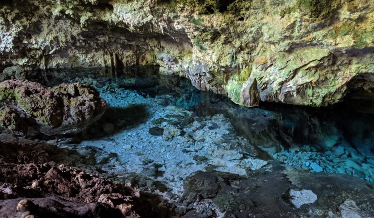 An ancient Limestone Jungle Cave With Crystal Clear Turquoise Fresh Water